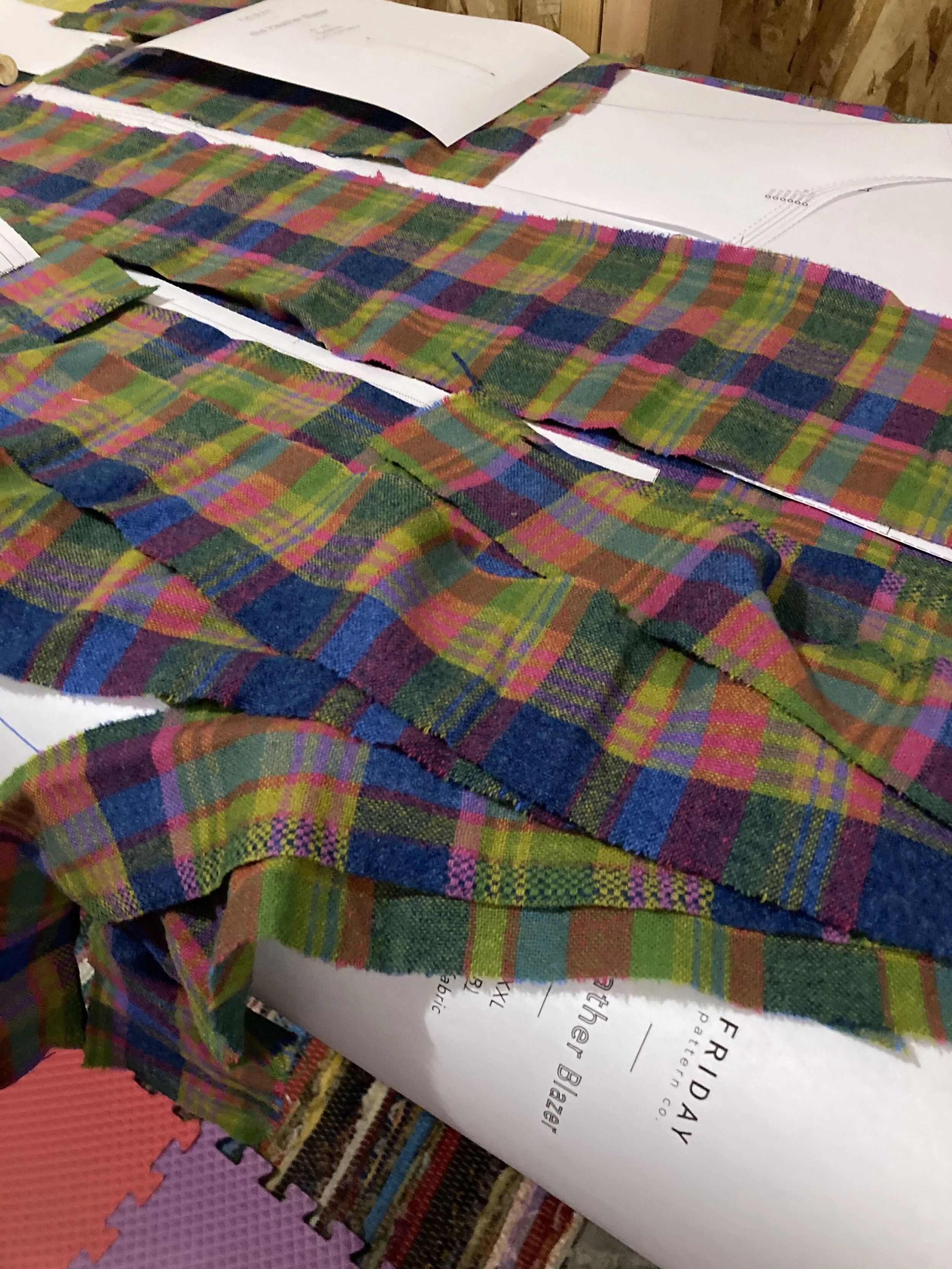 This is a fully lined, over-sized fit blazer. It’s ultimate cool girl chic. Like the type that screams I model on Pinterest for hip fashion companies. So I did what I do best and headed to Pinterest to get inspo. I was seeing a lot of plaid. Like a lot. I kept scrolling and scrolling and scrolling and it was plaid, plaid and plaid. Then it hit me like a tonne of bricks. I knew what i needed to do. I had a wool plaid sitting in my stash for about 3 years now. It was vintage deadstock fabric from Ireland. I found it on Etsy years ago because I was instantly drawn to the colours. Now there was only one problem, the problem that had kept it in my stash for so long. This fabric had been cut into strips. Yep, you heard that right. I bought it in STRIPS. I loved it so much that I bought all the remnants.
